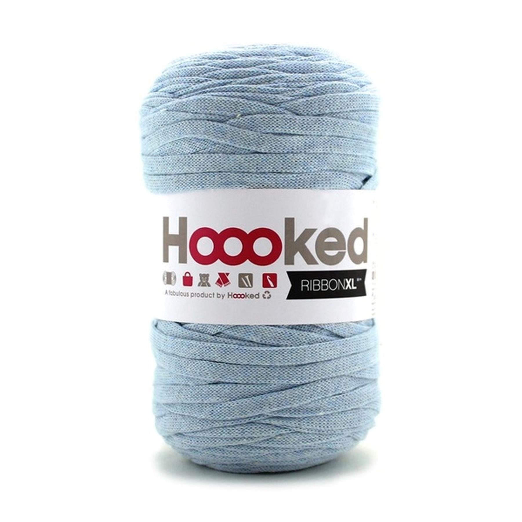 RibbonXL is our superb bulky and lightweight recycled fabric yarn that comes in standard series of our own fabulous Hoooked colours. RibbonXL fabric yarn is Hoooked Zpagetti's light weight sister. RibbonXL works easy, giving quick and stylish results. RibbonXL is an itch-free fabric yarn, it is slightly elastic and it knits very easy, giving you quick and stylish results. RibbonXL is made of 100% recycle fibres (of which 80% cotton) and is ideal to make your own extra-large amigurumi, home knits, and accessories and fashion garments. Each bobbin RibbonXL weighs approx. 250 grams and has 120 meters length. You can knit or crochet a surface of 40 x 40 cm. We recommend to use a crochet hook or knitting needles 8-12 mm, depending on your preferences. RibbonXL is machine washable and suitable for everyday use.